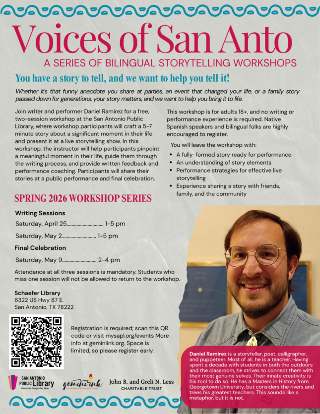 Mar 28 10:00 am - 2:00 pm Climb Inside Other Minds: Exploring Persona Poetry with Leticia Urieta $100