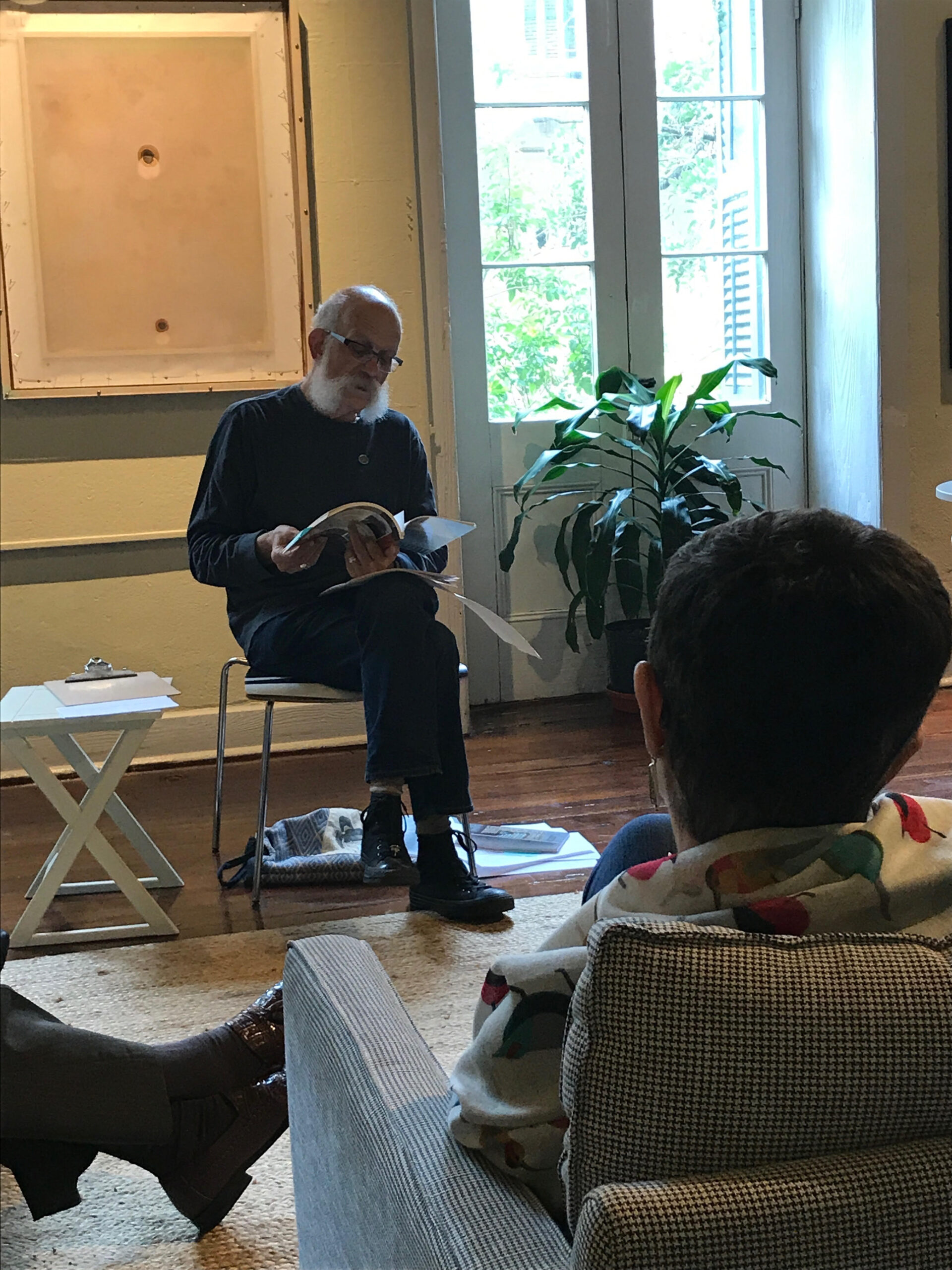 A creative writing teacher for over fifty years, in addition to his 12 years of teaching at The Cyndi Taylor Krier Juvenile Correctional Treatment Center for Gemini Ink’s Partners Program – LaVilla-Havelin teaches senior citizens in the Go Arts Program through Bihl Haus Cultural Arts, and has been the Poet In Residence at the Young Women’s Leadership Academy, teaching high school students. He was Gemini Ink’s 2020 Writers in Communities Teacher of the Year.